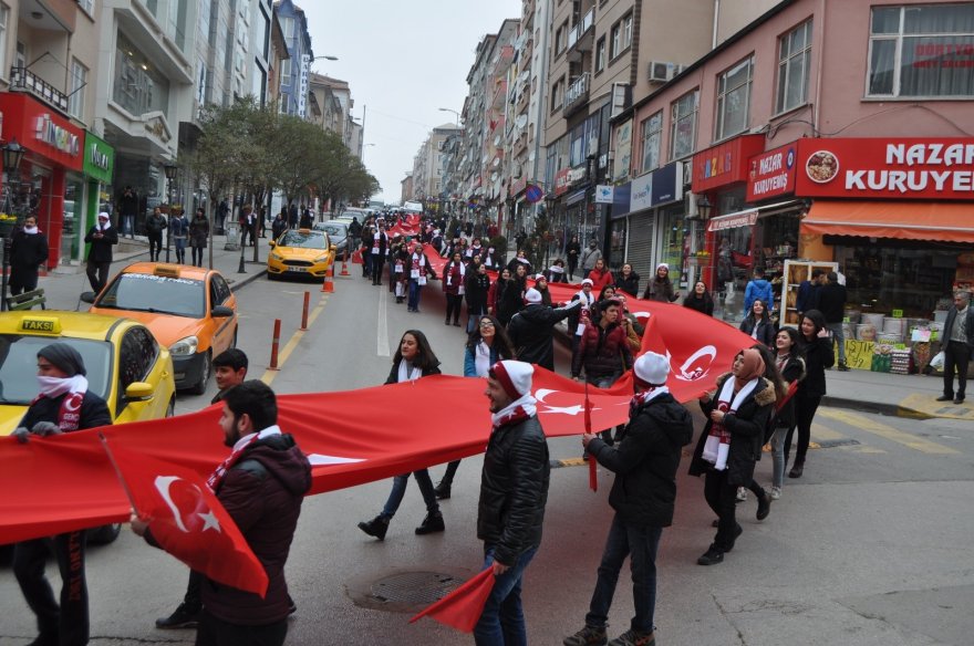 Kırıkkale’de düzenlenen Sarıkamış şehitlerini anma yürüyüşünde yaşanan acı olayın 103. yılının anısı adına 103 metrelik bayrak açıldı.