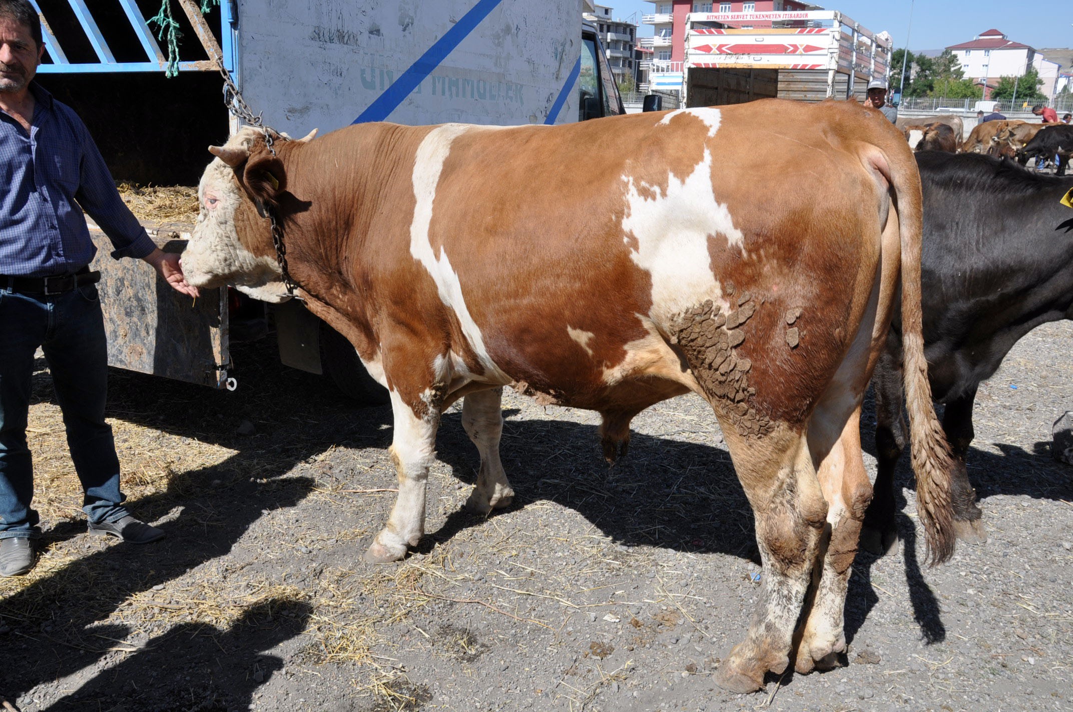Kars’ta kurban pazarına getirilen küçük ve büyükbaş kurbanlıklar alıcı beklerken, pazarın gözdesi 700 kiloluk ‘Mercan’ 11 bin TL’ye satıldı.