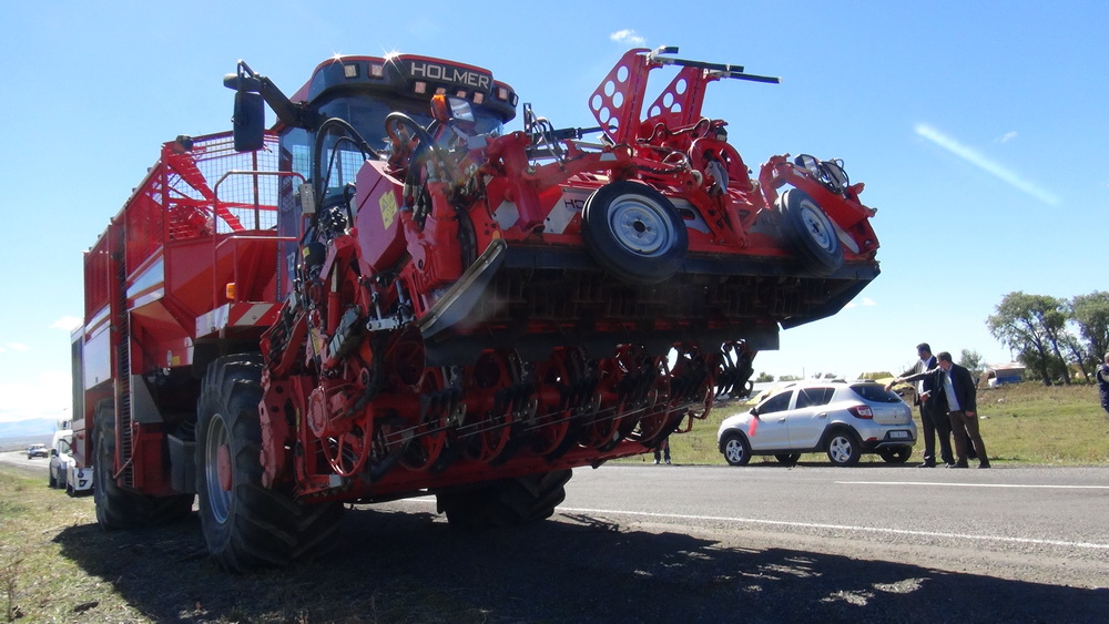 Merkezi Almanya’da bulunan HOLMER’in Ukrayna ve Türkiye genel müdürü Matthias Angerstein ile bağlantı kuruldu. Boş ağırlığı 29 ton olan 4 metre yüksekliğindeki Holmer Terra Dos T4-30 marka Pancar Söküm Makinesi 500 bin Euro’ya satın alındı. Deposu 1150 litre mazot alabilen, 24 saat kesintisiz çalışma kapasiteli olan daha bir çok özelliğe sahip makine Almanya’dan Kars’a 45 günde getirilebildi.