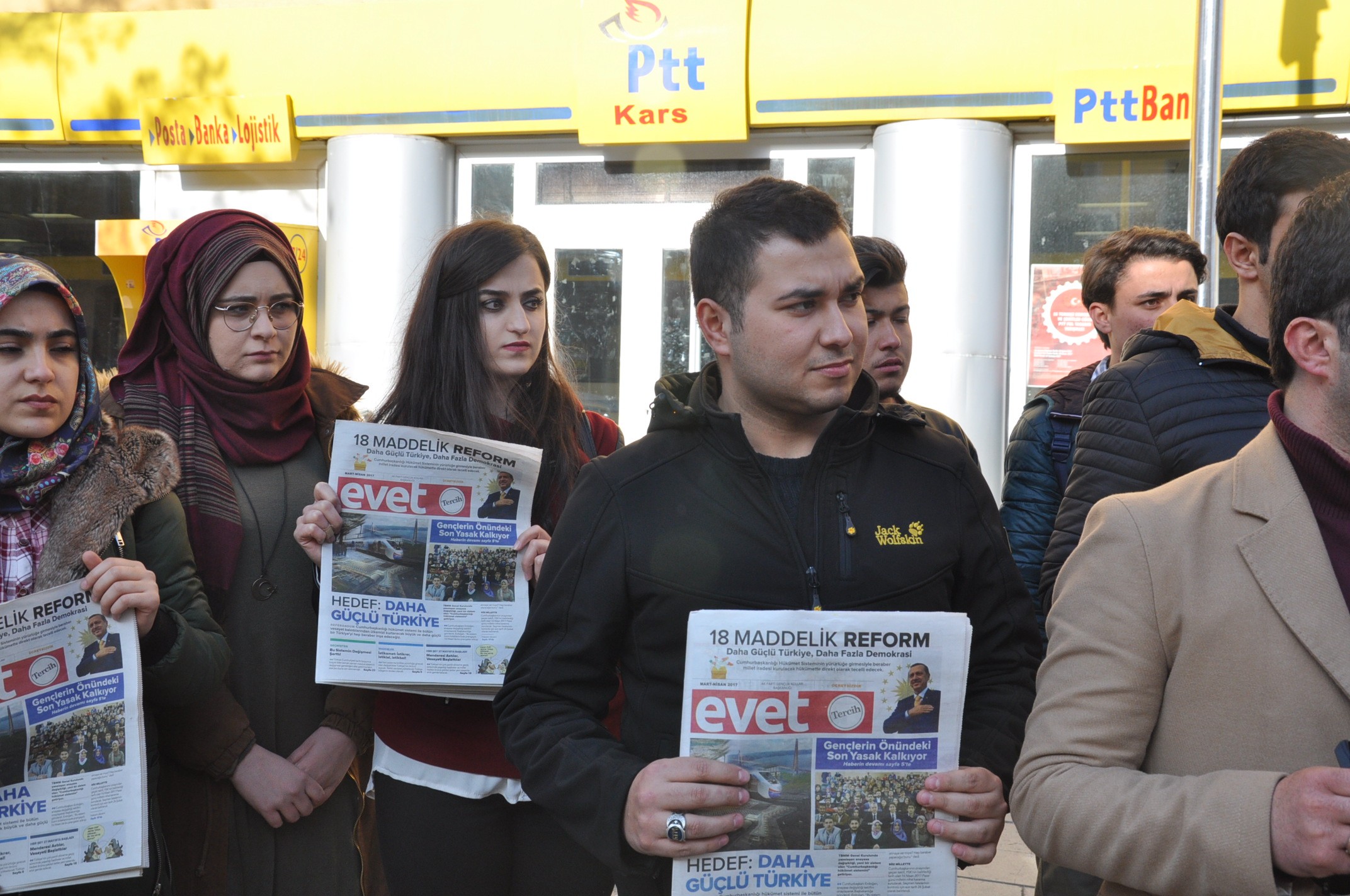 AK Parti Kars Gençlik Kolları Başkanı Muhammed Emin Haliloğlu ve yönetim kurulu üyeleri CHP Genel Başkanı Kemal Kılıçdaroğlu'na partinin Evet Gazetesini gönderdi.