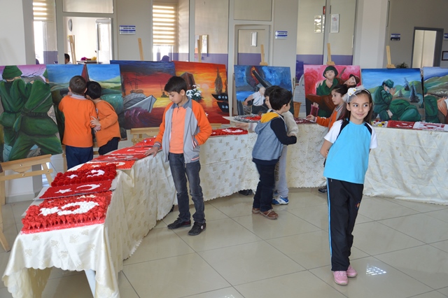Ayrıca okulumuzun lobisinde, Görsel Sanatlar Öğretmeni Gülayten Çiftçi tarafından “Çanakkale” Konulu Resim Sergisi açılışı yapıldı. Çanakkale konulu Resim Yarışmasında dereceye giren öğrencilere; Hale Gürbüz, Bahar Köken ve Ecrin Sena Er’e ödülleri İngilizce Zümre Başkanı İbrahim Haykır tarafından verildi. Hafta içerisinde “Çeşitli Yönleriyle Çanakkale” konulu sınıflarda Pano Çalışması yapıldı.