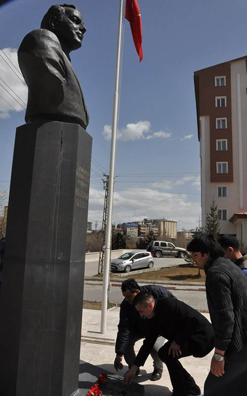 Azerbaycan İrevan Dram Tiyatrosu ekibi, Mustafa Kemal Atatürk ve Erzurum Kongresi ile ilgili hazırladıkları ‘Cumhuriyet’in İlk Sedası’ tiyatro oyununu sergilemek için Türkiye turnesine çıkan ve Kars’a gelen Azerbaycanlı ekip, Azerbaycan’ın merhum Cumhurbaşkanı Aliyev’in anıtını ziyaret ederek kırmızı karanfil bıraktı.