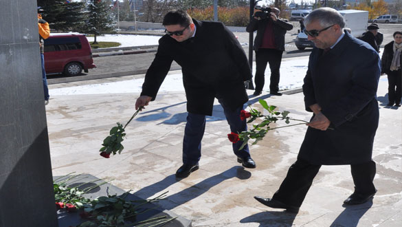 Azerbaycan Kars Başkonsolosluğu’nca Azerbaycan Cumhuriyeti’nin bağımsızlığını kazanmasının 25. Yıldönümü etkinlikleri Haydar Aliyev Parkı’ndaki Aliyev’in büstüne kırmızı karanfil bırakılması ve saygı duruşuyla başladı.