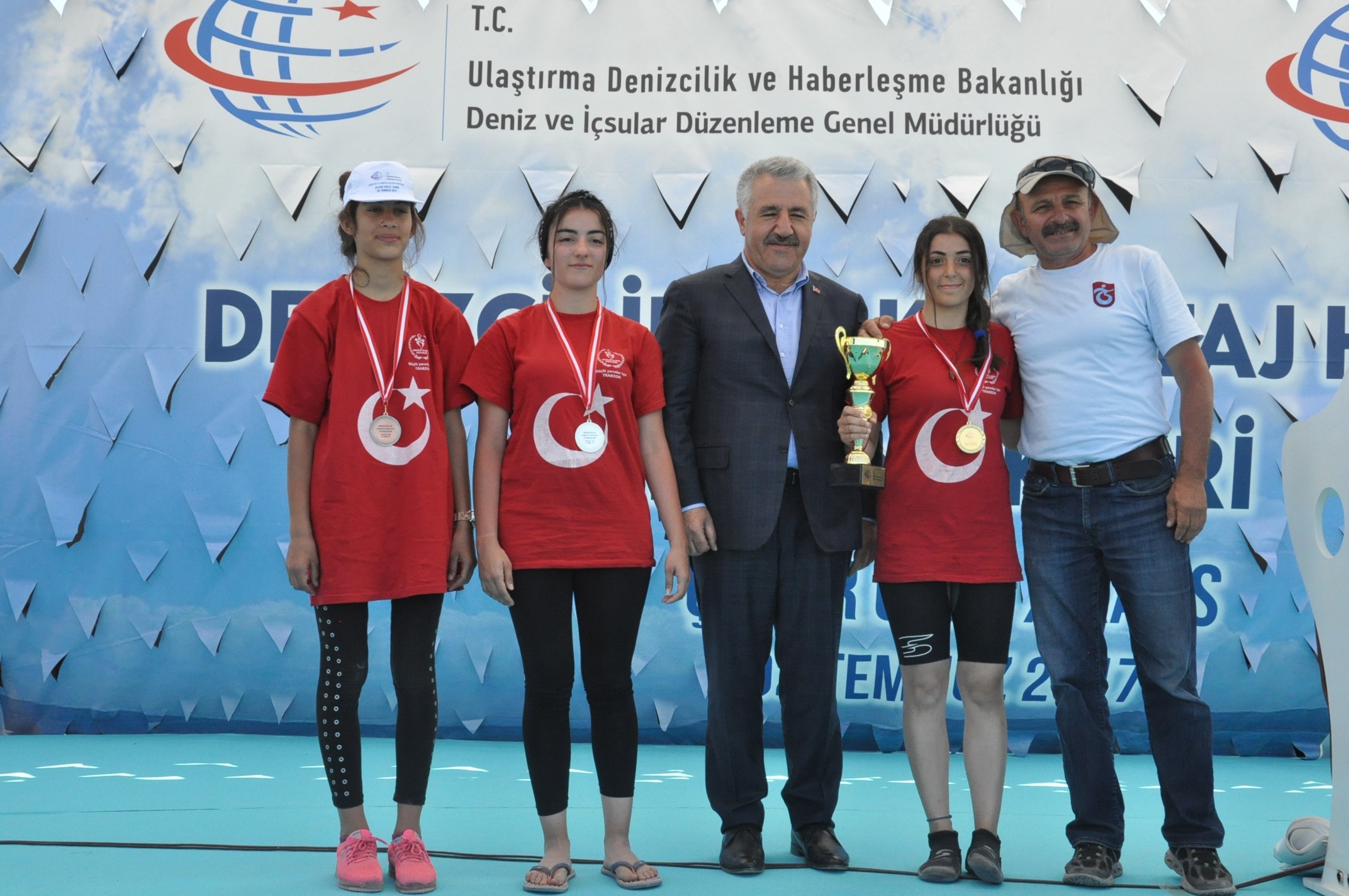 Arslan, “Bu konuda çok mesafe aldık. Biliyoruz ki daha almamız gereken mesafeler var. Artık Kars, Ardahan bölünmüş yollarla Gürcistan’a, Karadeniz’e, Akdeniz’e, Nahçıvan’a, ülkemizin batısına erişilebilir hale geldi. Ve Kars’a kadar gelen demiryolunun hızlı tren haline gelmesi, buradan da Orta Asya’ya gidebilmesi adına Bakü-Tiflis-Kars dahil, Kars Lojistik Merkezi dahil demiryoluna sahip hale geldik. Geldiniz Kars Havalimanı’nı gördünüz. Ülkemizin marka terminallerinden biri de Kars Harakani Havalimanı. Ve inşallah insanlar ülkenin neresinden çıkarsa çıksınlar 2 saatte Kars’talar, 3 saatte Ardahan’dalar. Dolayısıyla havacılıkta da çok önemli bir gelişme sağladık. Ama biliyoruz ki bütün bu projeler, bütün bu ulaştırma tünelleri, üç tarafı denizlerle çevrili Türkiye’yi eğer deniz yoluyla, limanlar marifetiyle, denizcilik marifetiyle deniz aşırı ülkelere götürebiliyor ve o ülkeleri mesafe ne kadar uzak olursa olsun bizim komşumuz haline getirebiliyorsa anlamlı olacak. İşte son 14 yılda ülkemizin denizciliğini geliştirmek adına ciddi mesafe katettik. Gerek yasal düzenlemeler, gerek alt yapı yatırımları, gerek uluslararası arenada rekabet edebilmek adına yaptığımız uygulamalarla çok mesafe katettik. Yine iç sularımızda denizcilikle tanışması, gençlerimizin denizciliği öğrenmesi, üç tarafı deniz olan ülkede denizcilerin sadece kıyı kentlerinden değil, diğer kentlerden de çıkabilmesi adına iç sularda çok güzel, çok başarılı uygulamalar yapıyoruz. Bugün Çıldır’da yaptığımız, Kars’ta yaptığımız tam da bu ve memnuniyetimiz, gururumuz o ki ülkenin her yerine, iç sulara denizciliği getiriyoruz. Deniz sevdasını, denizi getiriyoruz. Gençlerimiz ise bu konuda hiç geri durmuyorlar” şeklinde konuştu.