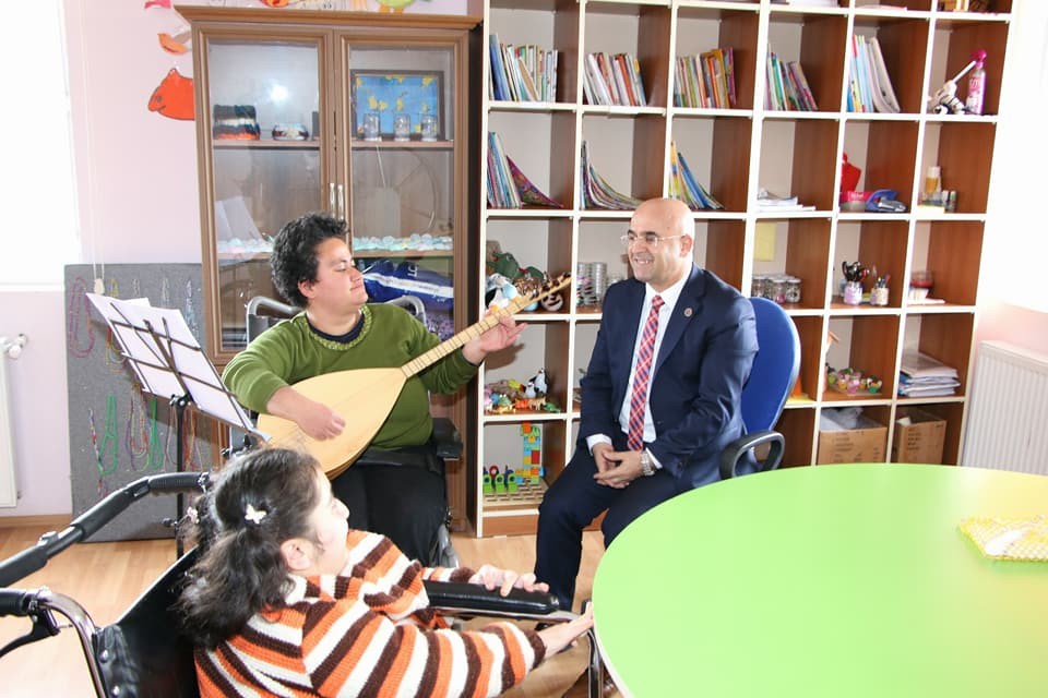 Selim Belediye Başkanı Coşkun Altun, Engelsiz Yaşam Merkezi’ni ziyaret ederek, yaşam merkezinde kalan öğrencilerle bir süre sohbet etti.