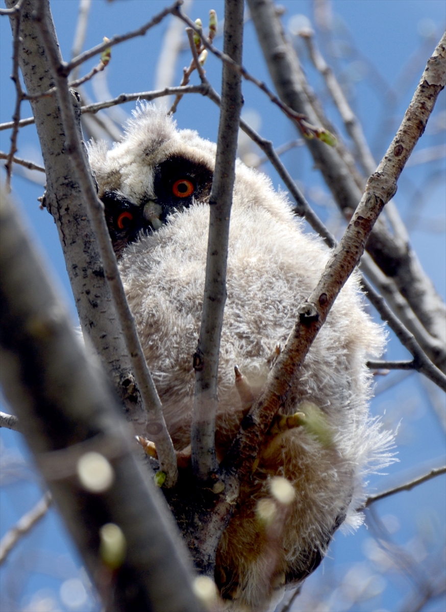 Kafkas Üniversitesi Veterinerlik Fakültesi kampüsündeki ağaçlara 10 yıl önce yuva yapan kulaklı orman baykuşları, çoğaldıkları bu bölgeyi mesken edindi