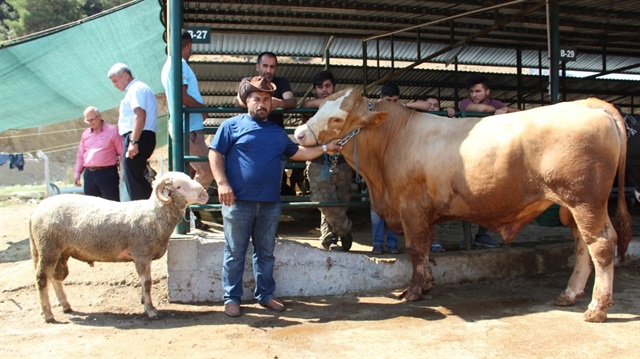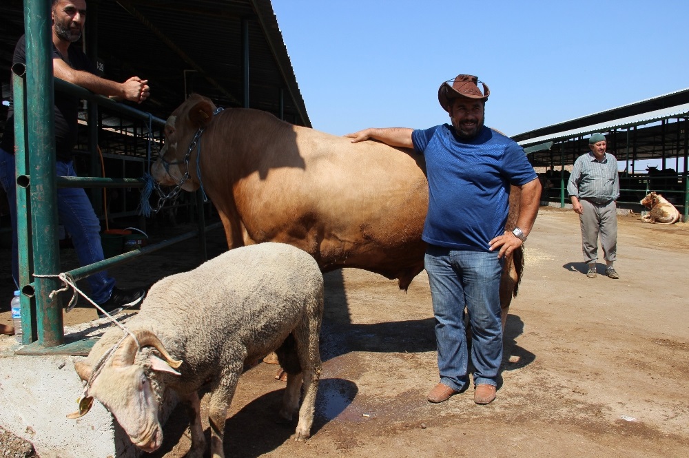 Kayalı Çiftliğinin sahibi hayvan üreticisi Tahir Kayalı, “Güzel bir danamız var. Bu danamızı alacak olan arkadaşlarımıza koçumuzu hediye vereceğiz. Aslında koçu alana dana hediye. Koçun fiyatı 16 bin TL, dana da yanında hediye. Danamız bir ton ağırlığında ve 2,5 yaşında. Koçumuz da ortalama 115 kilo merinos cinsidir, yağsızdır, çok güzeldir, bunlar da kendi üretimimiz” dedi. (İHA)