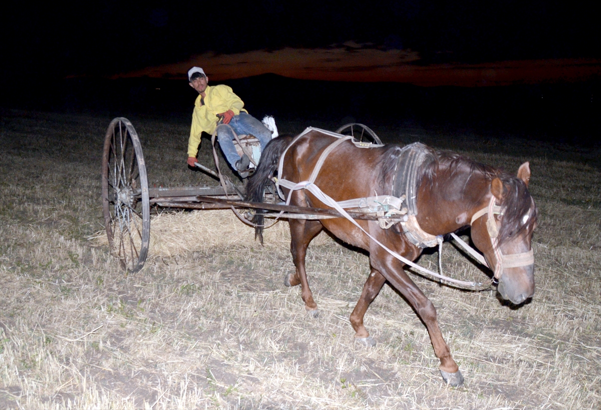 Türkiye'nin en yüksek yerleşim birimlerinden 2 bin 200 rakımlı Kars'ın Sarıkamış ilçesinde çiftçiler, gündüz hava sıcaklığının 30-35 dereceyi bulması nedeniyle arpa ve fig hasadına gün batımından sonra başlıyor.