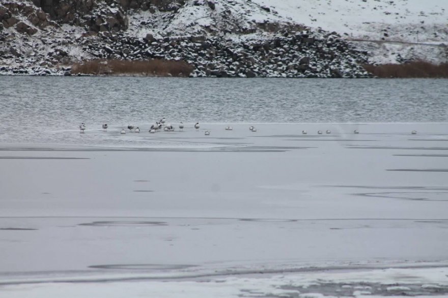 Çıldır Gölü 124 kilometrekarelik alana sahip Çıldır Gölü'nün yüzeyi şiddetli soğuklarla birlikte buz tutmaya başladı.