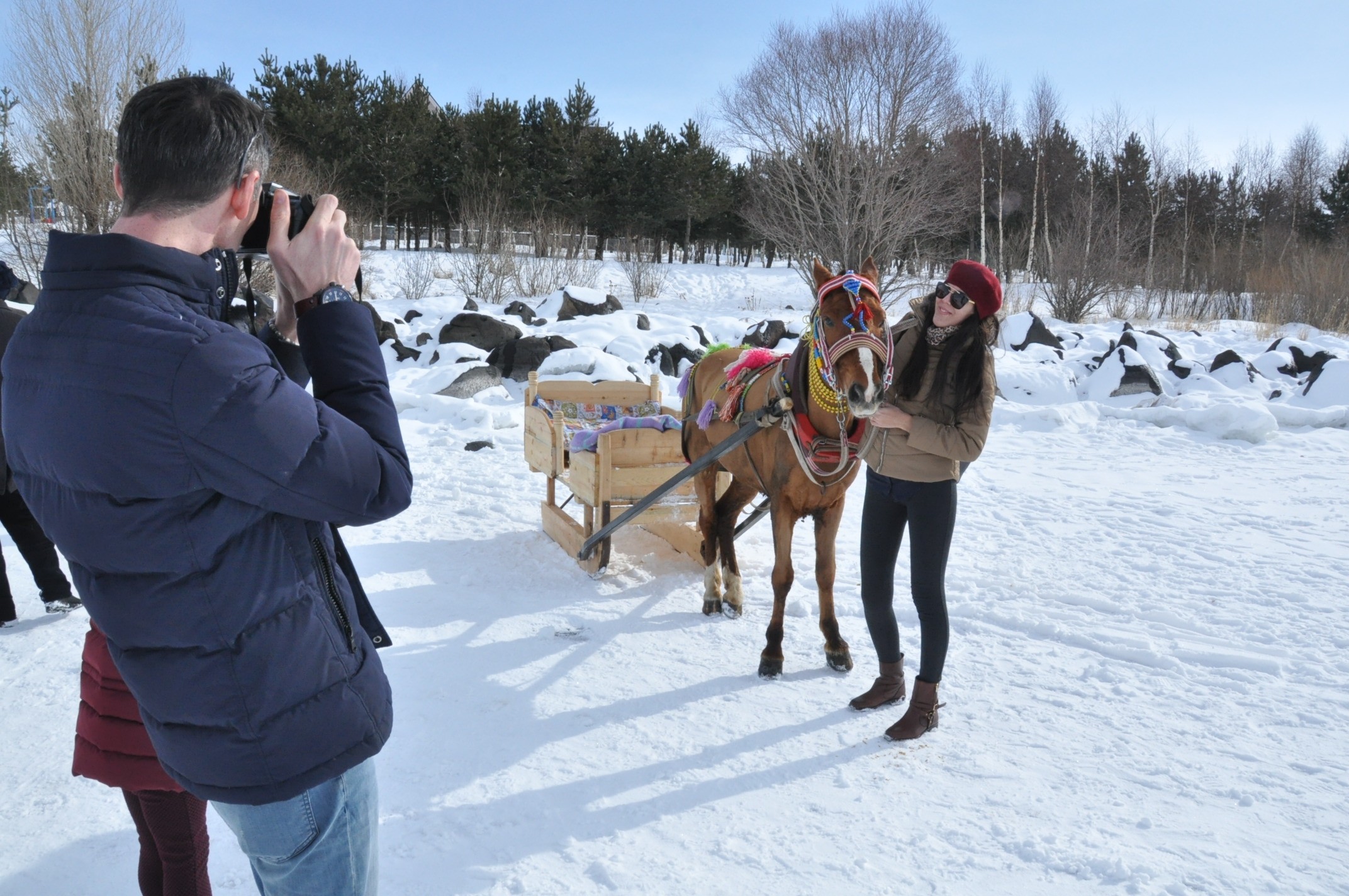Çıldır Gölü üzerinde atlı kızak keyfi