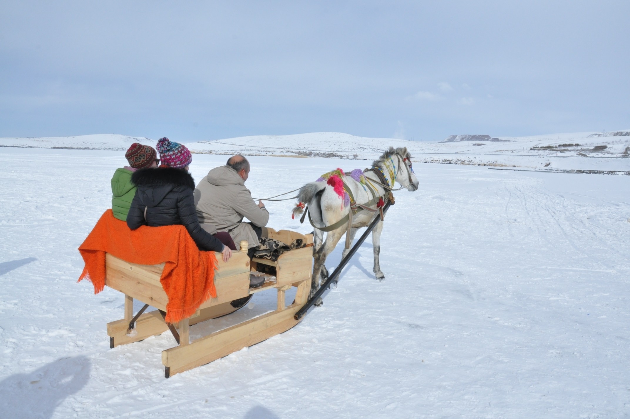 Türkiye’nin farklı yerlerinden Kars’a tatil için gelen vatandaşlar, Çıldır Gölü’ne uğramadan Kars’tan ayrılmıyor. Özelikle göl üzerinde gezmek ve atlı kızaklarla tur atmak isteyen vatandaşlar, göl üzerinde atlı kızakla gezinti yaparken büyük heyecan yaşıyor. Buzdan gelen ‘çıtırtı’ sesiyle zaman zaman korkulu anlar yaşayan vatandaşlar, Çıldır Gölü üzerinde unutamayacakları bir gün yaşıyor.
