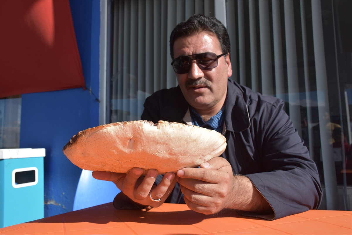 Vatandaşlarca Yahni Dağı'nda bulunan 2 kilo ağırlığındaki dev çayır mantarı ilgi çekti.
