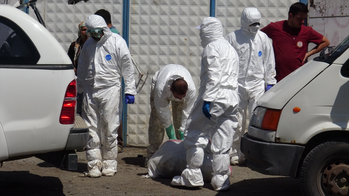 Özel kıyafetler giyerek kanatlı hayvanları toplayan görevliler, Aydınlık Evler Mahallesi'nde Abdurrahman Mali'ye ait 173 kazı toplayarak itlaf etti.