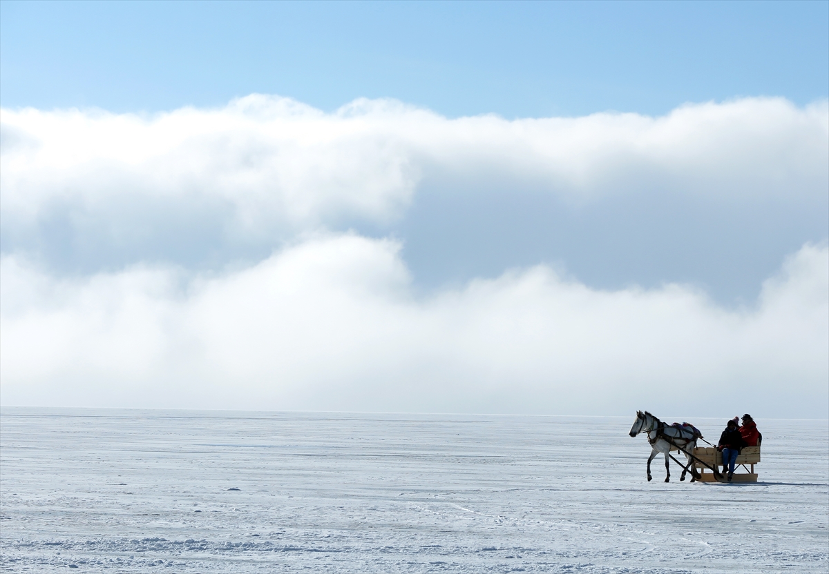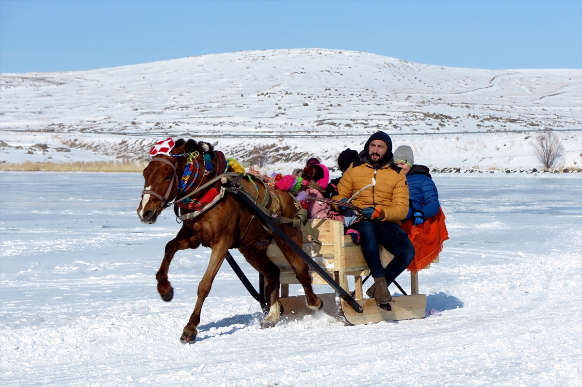 Bu arada Kars'a gelen ziyaretçiler, Ani Örenyeri'ni gezdikten sonra Çıldır Gölü'nün buzla kaplı zemininde atlı kızaklarla tur atmayı da ihmal etmiyor.