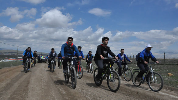 Kars Fen Lisesi öğrencileri, Dünya Oryantrik Günü’nde yaklaşık 4 kilometre pedal çevirdi. Azat Köyü İlkokulu’nu ziyaret eden lise öğrencileri, ilkokul öğrencilerine çeşitli hediyeler verdi.