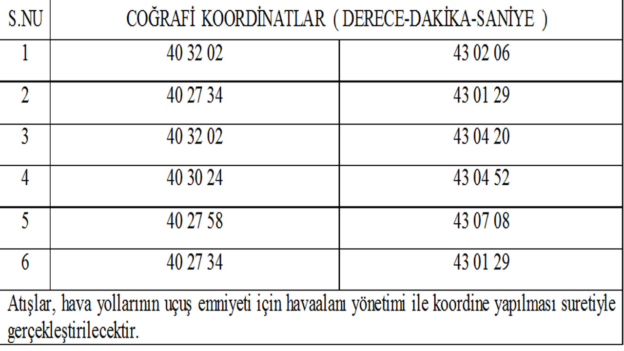Kars ili sınırları dahilinde bulunan Akbaba Atış Alanında, 11-15 Nisan 2016 tarihleri arasında saat ( 08:00 – 19:00 ) 1’inci MKNZ. Tugay Komutanlığı’nca ağır silah (top ve havan) atışları faaliyetleri icra edilecektir.