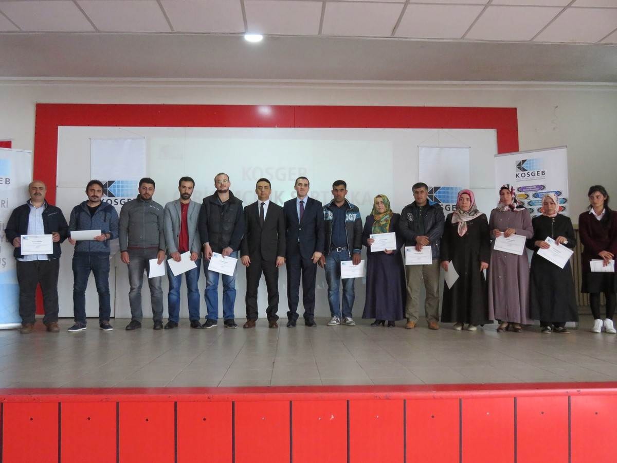 Kağızman Halk Eğitim Merkezi Toplantı Salonu’nda düzenlenen törene, Kaymakam Musa Üçgül, KOSGEB Kars İl Müdürü Lütfullah Aktaş ile kursiyerler katıldı.