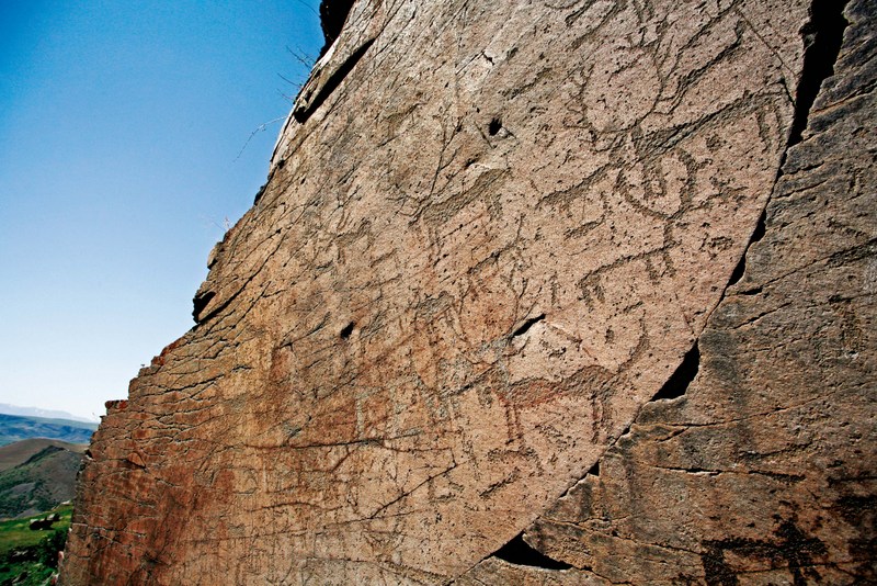 Kars: Kış Güzeli, Onu ilk kez Kars’ta, zorlukla tırmandığım bir kayanın üzerinde gördüm. Kayanın bulunduğu Kağızman’ın Camuşlu köyüne benden 12.000 yıl önce gelmişti! Yanında 77 geyik, 13 dağ keçisi ve başka hayvanlar vardı. Bir avcıydı, ama kayanın parlak yüzüne hayvanlarla birlikte kendi resmini de çizince, bir tarih öncesi ressamına dönüştü. Şu günlerde kış buzdan nefesini ağır ağır Kars’ın tepelerinde dolaştırırken, rüzgârda savrulan kar tanelerinin inatçı bir sessizlikle üzerine konacağı resimleri düşünüyorum.