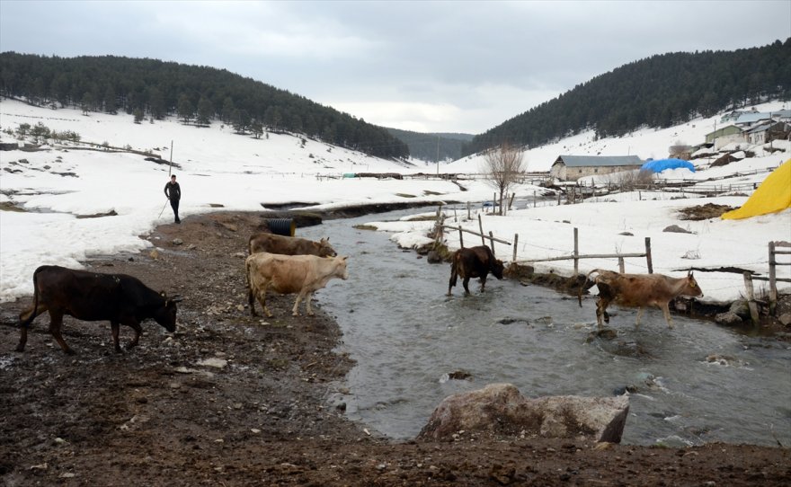 Türkiye'de kış mevsiminin en sert geçtiği Kars'ın Sarıkamış ilçesinde baharın gelmesiyle doğa canlanırken, ilçeye bağlı Handere köyü hala karla mücadele ediyor.