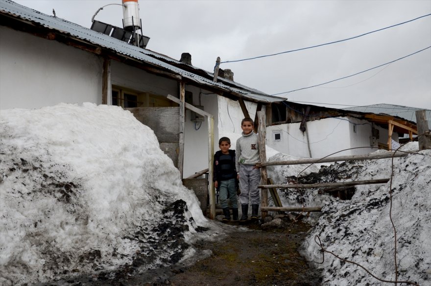 Kars'ta hava sıcaklığı 10 derecenin üzerinde seyrederken bazı vatandaşlar, bahçe ve tarlalarını ekmeye başladı ancak kış şartlarının uzun sürdüğü Handere köyünde, vatandaşlar, evlerinin önünü kaplayan karı temizlemeye çalışıyor.