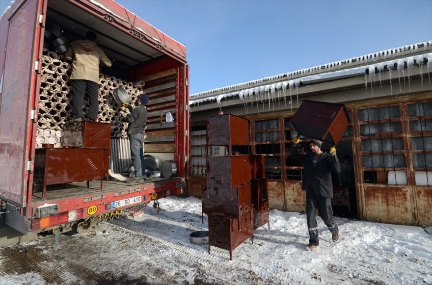 Bölgedeki illere kamyonlara yüklenerek gönderilen sobalara müşterilerden yoğun talep gelirken soba üreticileri de talepleri karşılamak için çaba gösteriyor.