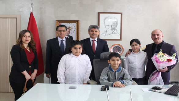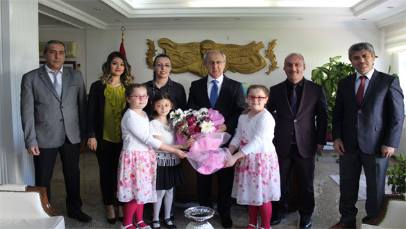 23 Nisan Ulusal Egemenlik ve Çocuk Bayramı etkinlikleri kapsamında, İl Milli Eğitim Müdürü Hakan Cırıt, Okul Müdürü Ercan Bilen, Öğretmen Güleren Durmagit ve Hüsnü M.Özyeğin İlkokulu öğrencileri ile birlikte Vali Davut Haner’i makamında ziyaret ettiler.