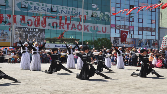 Öğrencilerin şiirler okumasıyla başlayan kutlama programında,Şehit Er Cihat Sayım Anaokulu,75.Yıl Anaokulu,Mehmet Çavuş Anaokulu,Kurtuluş İlkokulu,Halk Eğitim Merkezi Müdürlüğü Kafkas ekibi ve her yaş grubundan çocuklar çeşitli halkoyunları ve dans gösterisi ile renkli görüntüler sergilediler.