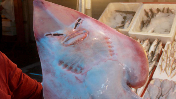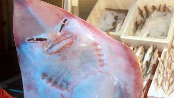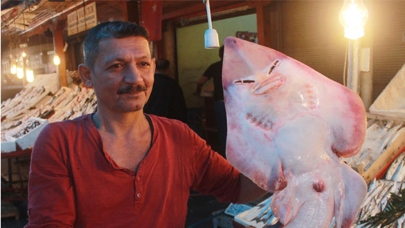 Mersin'de balıkçıların ağına takılan insan yüzlü balık, vatandaşların büyük ilgisini çekiyor. 1 metrenin üzerindeki boyu ile tezgahları süsleyen balığın, köpek balığı cinsinden olan 'sapan' balığı olduğu belirtildi.