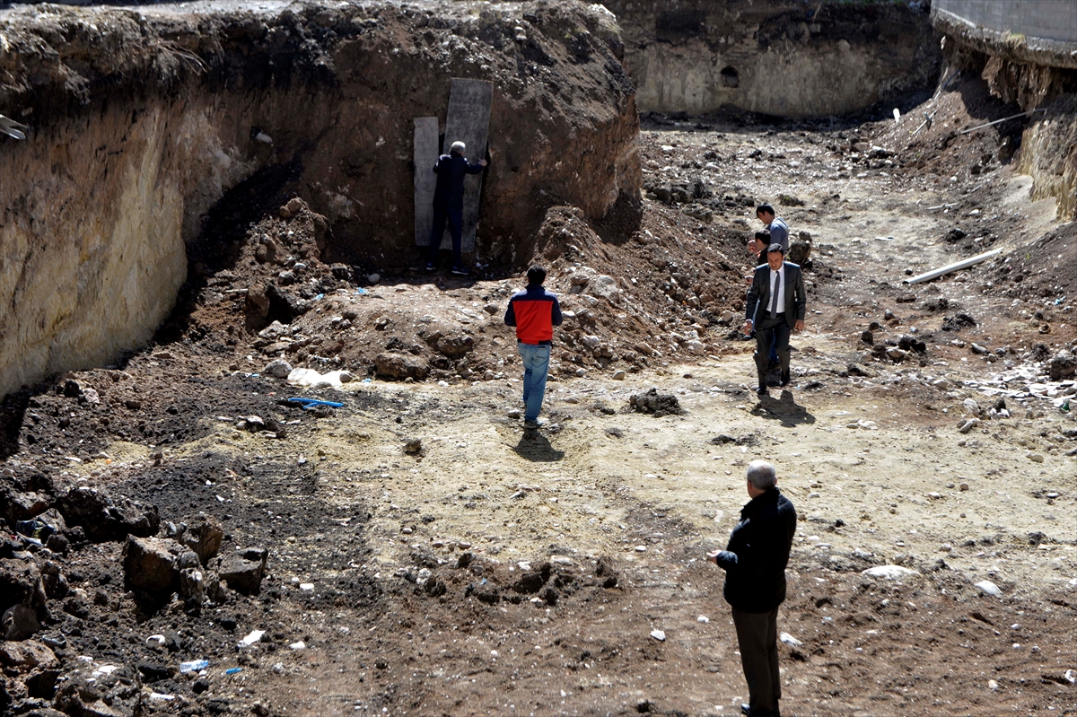Ardahan'da inşaat alanındaki kazı sırasında, işgalci Rus subaya ait olduğu değerlendirilen cesedin bulunduğu alanda ekipler ilk resmi incelemeyi yaptı