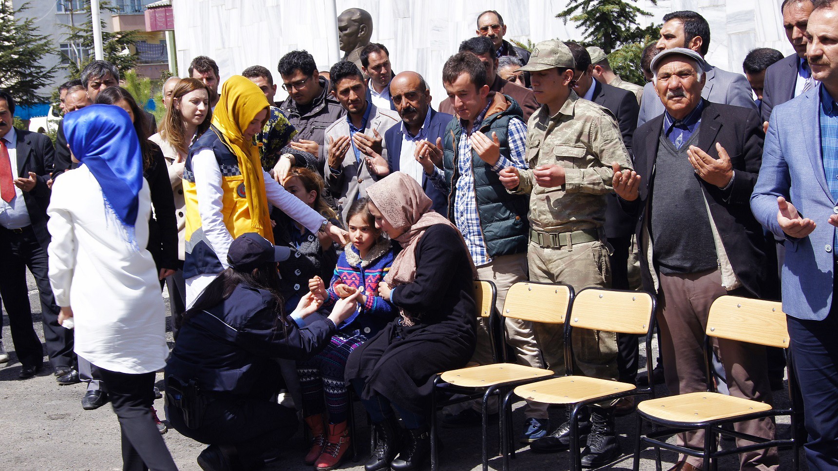 İlçe Jandarma Komutanlığı önünde yapılan törene şehidin silah arkadaşları, daire amirleri ve vatandaşlar katıldı. Şehit Uzman Çavuş Aytunç Altıntaş'ın eşi ve çocuğunun feryadı törendekileri ağlattı.