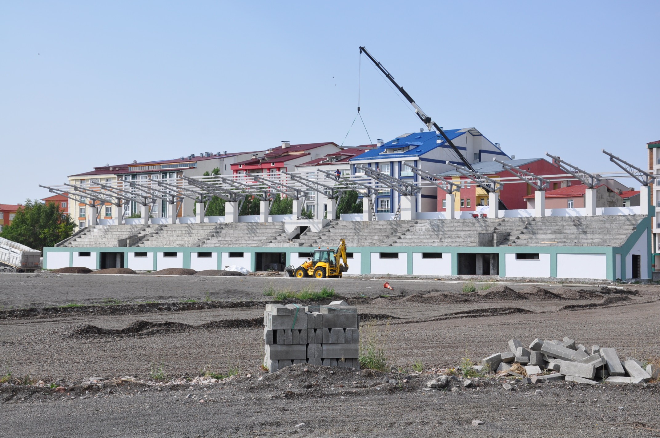 Kars’ta Şehir Stadyumu'nun yıkılarak yerine Sentetik Yüzeyli Atletizm Pisti yapım çalışması tüm hızıyla devam ediyor. 8 Haziran 2015 tarihinde ihalesi yapılan ve ilgili müteahhit firmanın iflas etmesi nedeniyle bir süre ara verilen Kars Sentetik Yüzeyli Atletizm Pisti yeniden ihale edildi, ihaleyi alan ilgili firma tarafından hızlı bir şekilde kaldığı yerden yapımına davam edilen tesisisin tribünlerinin demir konsolları da konulmaya başladı.