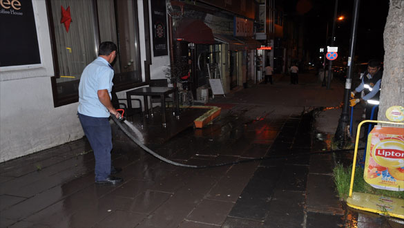Öte yandan Belediye Başkanlığı'na bağlı İtfaiye Müdürlüğü ekipleri gece geç saatlere kadar kaldırımları yıkadı. İtfaiye ekiplerine vatandaşlarda destek verdi. İtfaiye ekipleri kaldırımları yıkarken, temizlik illeri ekipleri de çöpleri aldı.