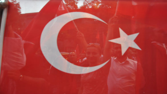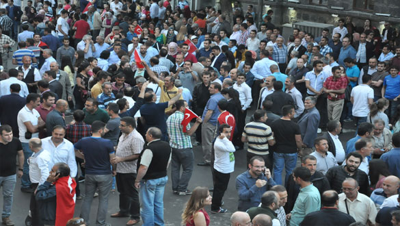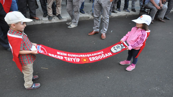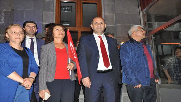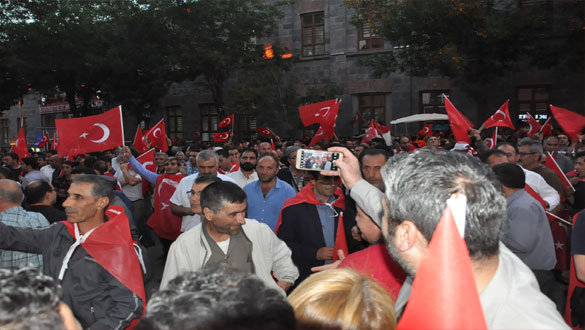 Faikbey Caddesi üzerinde bulunan Emniyet Müdürlüğü ile AK Parti İl Başkanlığı önünde toplanan binlerce vatandaş kadınıyla, erkeğiyle, yaşlısıyla, çocuğuyla ellerinde Türk bayrakları ile darbeye karşı tek ses tek yürek olmaya devam ediyor.