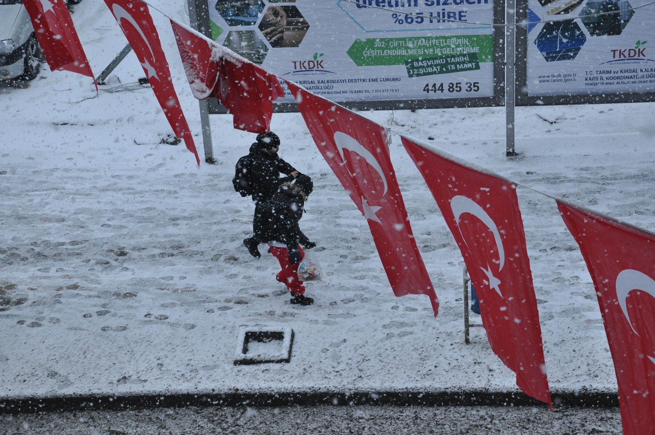 Kars’ta yalancı bahar kısa sürdü. Bir süredir etkili olan güneşli ve sıcak hava yerini yeniden kar yağışına bıraktı. Sabaha doğru başlayan ve devam eden kar yağışı kısa sürede etrafı beyaza bürüdü.