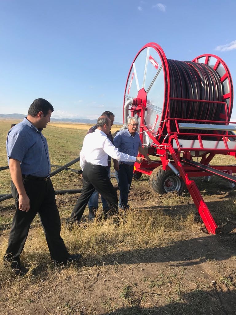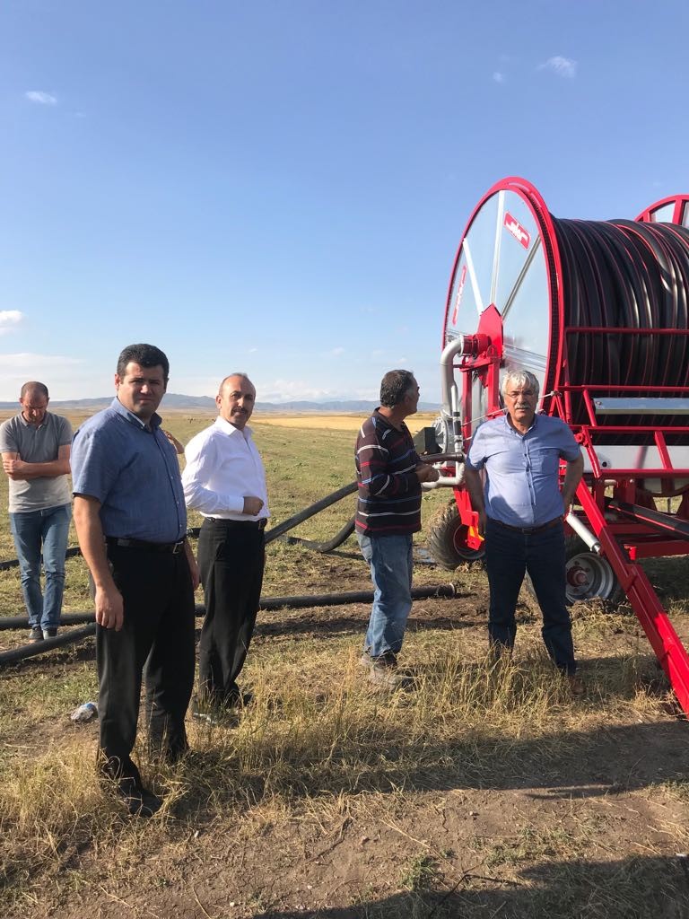 Kars Tarım ve Orman Müdürü Dr. Hüseyin Düzgün, “Hükümetimiz tarafından yapılan barajların sonrasında sulanabilen arazi miktarımız artmaktadır. Bu bağlamda; Tarım ve Orman Bakanlığı 14. Etap Kırsal kalkınma Destekleri kapsamında Bireysel Sulama Sistemleri, yüzde 50 hibe destekleri kapsamında Akyaka Esenyayla köyü çiftçilerinden Yaver Ülker'in almış olduğu “Otomatik Tamburlu Sulama Makinesi’ne” yüzde 50 hibe desteği sağlanmıştır” dedi.