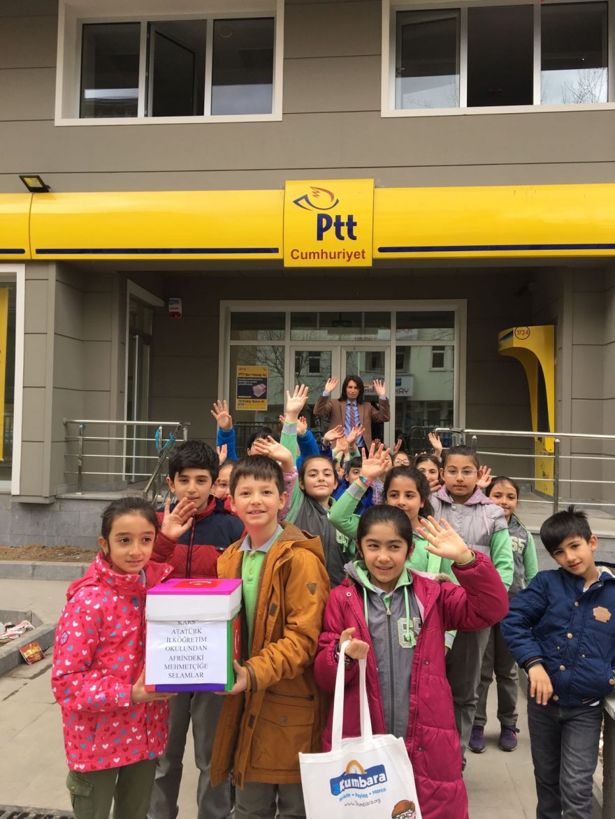 Öte yandan harçlıklarını Türk Silahlı Kuvvetleri Güçlendirme Vakfı'na bağışlayan öğrenciler Zeytin Dalı Harekatı'na katılan Mehmetçiğe destek için hazırladıkları resim, şiir ve mektupları da PTT Kars Şubesinden Afrine gönderdi.