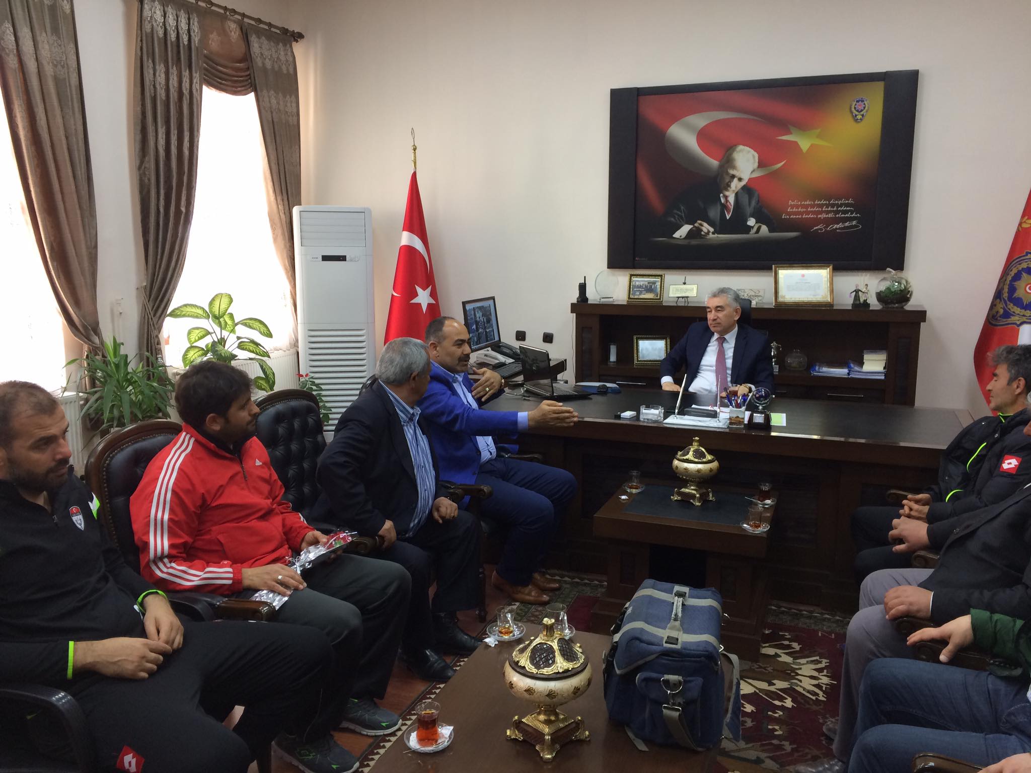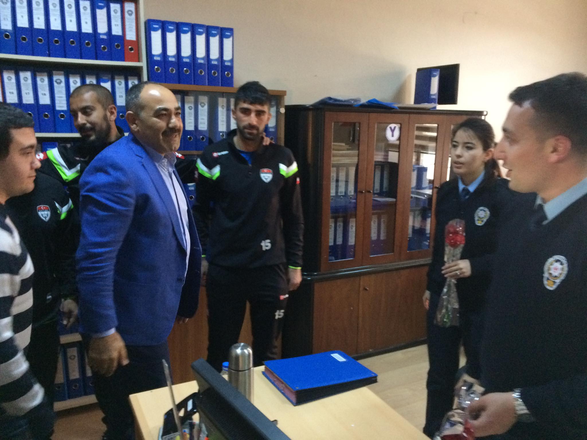 Karsspor 36 Spor Kulübü Başkanı Muharrem Yıldız, futbolcu ve teknik ekibi ile birlikte Emniyet Teşkilatının 172. Yılı dolayısıyla Kars Emniyet Müdürü Faruk Karaduman’ı makamında ziyaret etti.