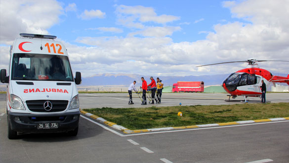 Kars’ta erken doğum olarak dünyaya gelen bebek ambulans helikopterle Erzurum’a getirilerek Bölge Eğitim ve Araştırma Hastanesi Yenidoğan Yoğun Bakım Ünitesinde tedavi altına alındı. Kars’tan bebeğin durumunun acil olduğunun bildirilmesi üzerine Erzurum’dan ambulans helikopter gitti. Kars Havaalanından bebeği alan ekip adeta zamanla yarışarak Erzurum’a döndü. Piste hazır bekletilen ambulansın kuvözüne konularak hastaneye yetiştirilen bebek hayata tutundu.