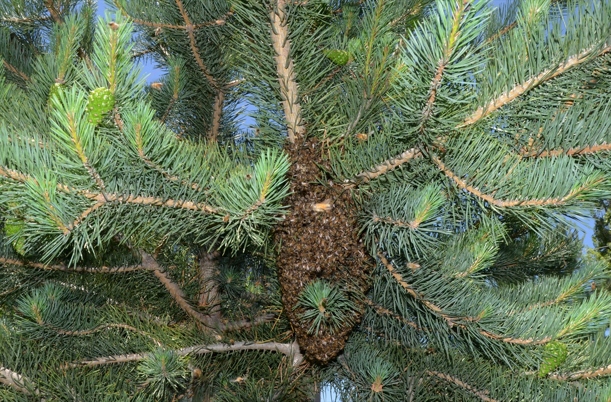 Oğul vermek için kovanlarından çıkan arılar, kendi bölgelerinin yakınındaki bitki, ağaç ve taş üzerine kümeleniyor.