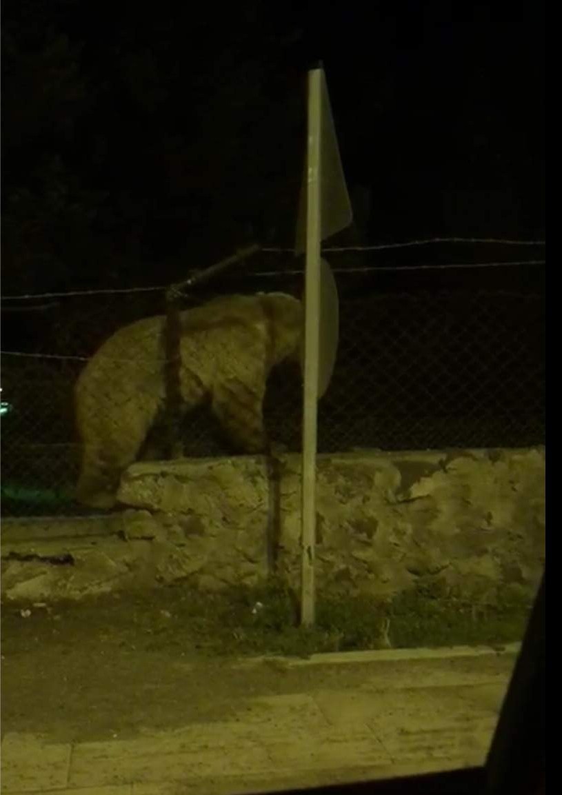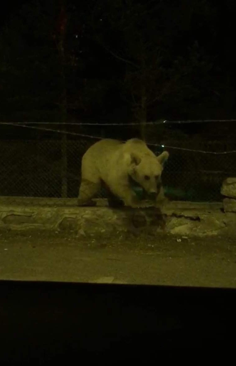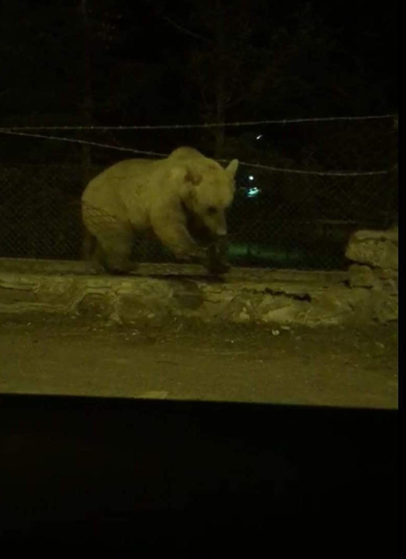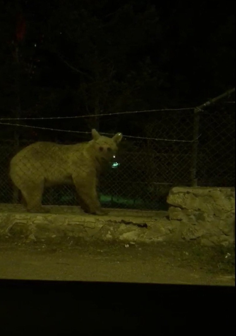 Sarıkamış merkeze yiyecek bulmak için inen boz ayı, bir sitenin içerisine girdi. Etrafı tel örgülerle çevrili siteden çıkmak isteyen boz ayı bir süre bulunduğu yerde sıkıştı. Sarıkamış’a ailesiyle birlikte İstanbul’dan gelen vatandaş ayının site duvarında tel örgülerin arkasında sıkıştığını gördü.