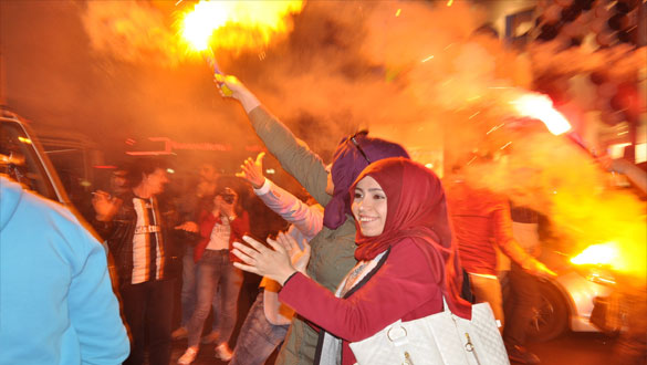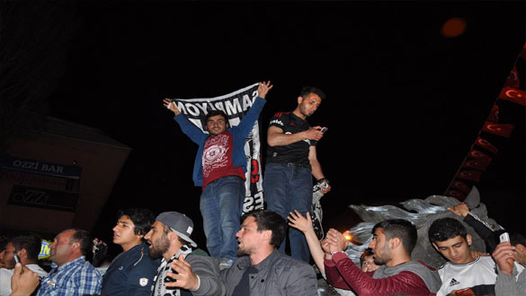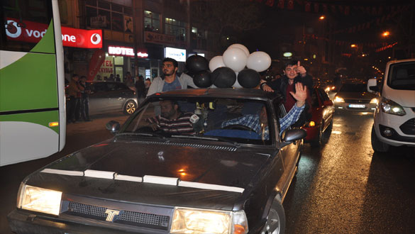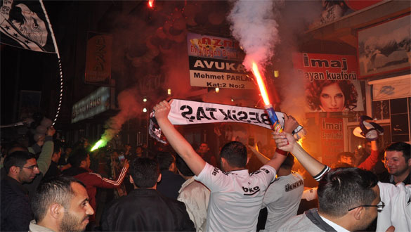 Kars’ta da maçın son düdüğüyle birlikte sokaklara dökülen Beşiktaş taraftarları şampiyonluk çığlıkları attılar. Meşaleler yakarak Faikbey Caddesi’ne çıkan siyah-beyazlı taraftarlar, şampiyonluğu halay çekerek kutladı. Faikbey Caddesi’ni trafiğe kapatan Beşiktaşlılar ‘Şampiyon Beşiktaş’ sloganları atarak 7 yıl sonra gelen şampiyonluğu bir birlerine sarılarak kutladı.