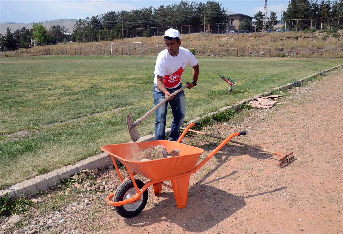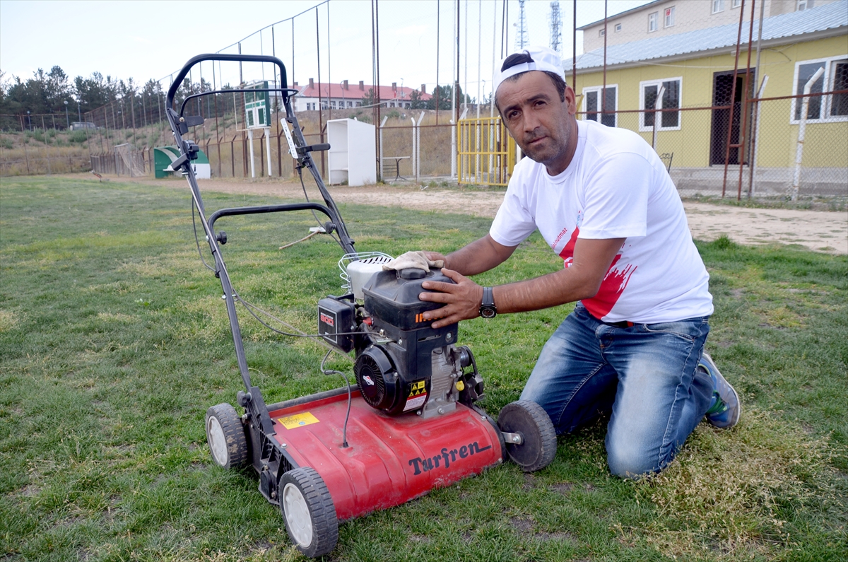 Sahanın bakımı ve otların biçme işlerini de yapan Kaya, yaklaşık 6 ay süreyle bu şekilde çalışarak hem cezasını kalan kısmını çekecek hem de spora katkı sağlayacak.