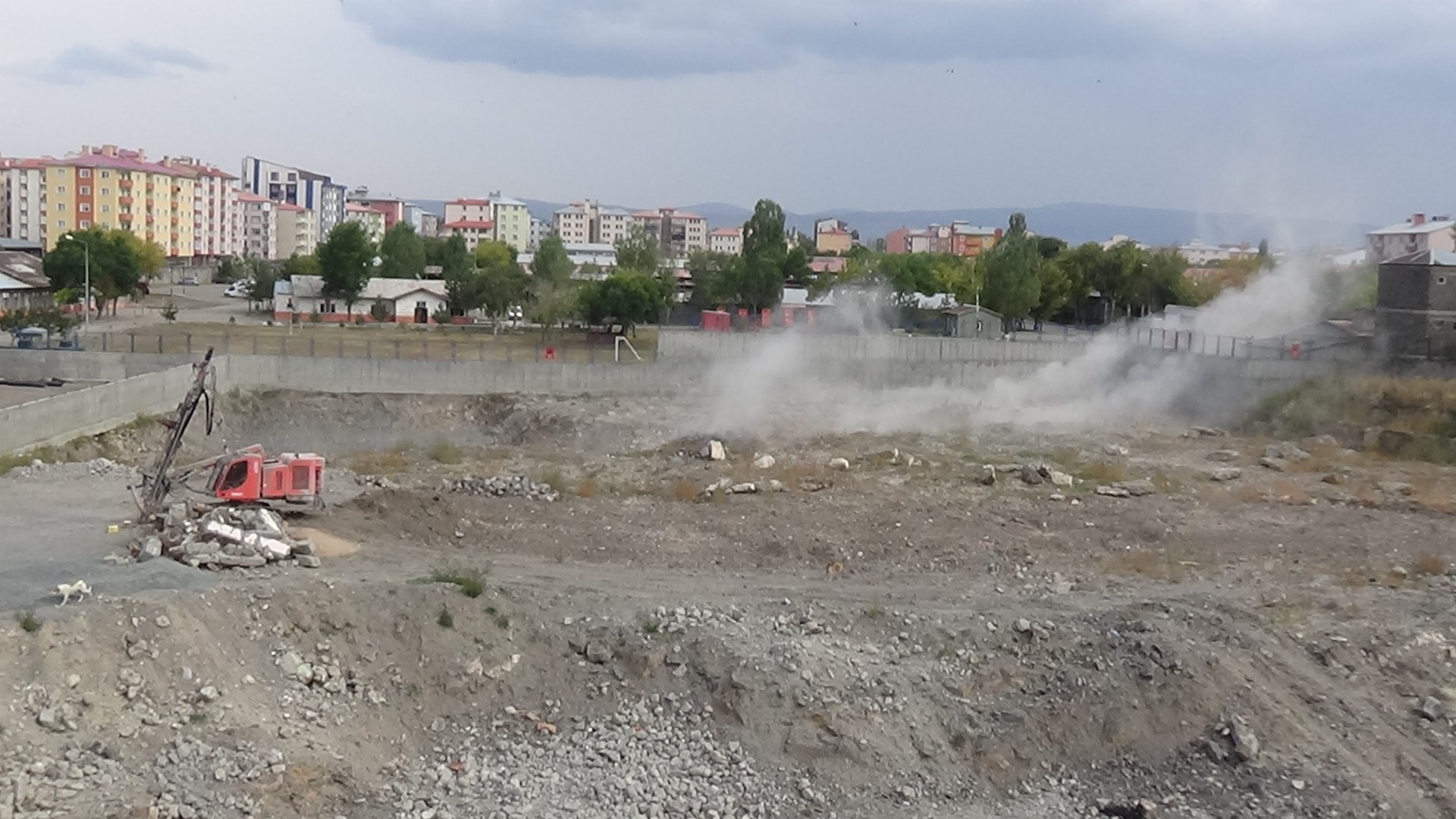 Kars'ta devam eden Sultan Alparslan Külliyesi temel kazısı sırasında çıkan büyük kayalar belirlenen kısımlarından dinamitlerle patlatıldı.