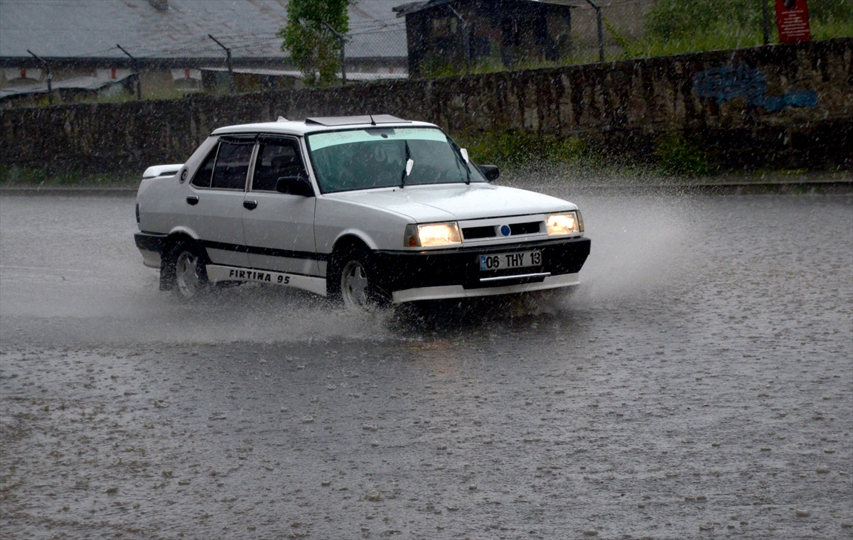 Yağış nedeniyle araçlar trafikte güçlükle ilerleyebildi.