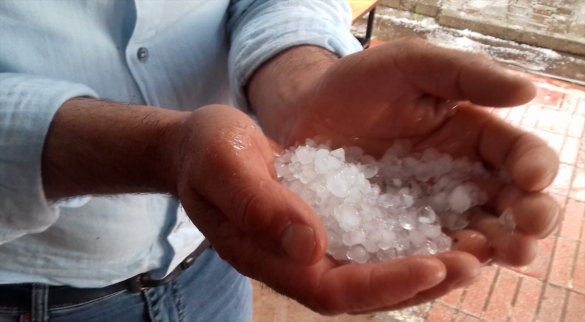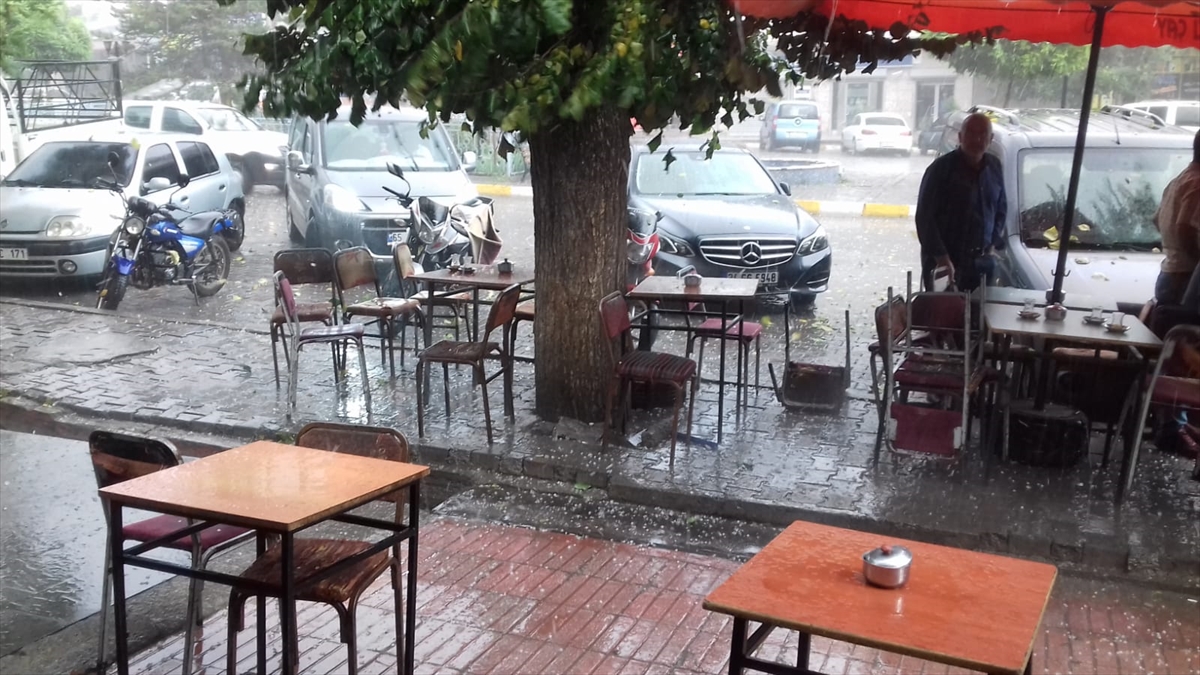 Öğleden sonra ilçede etkili olan sağanak, akşam saatlerinde yerini doluya bıraktı.