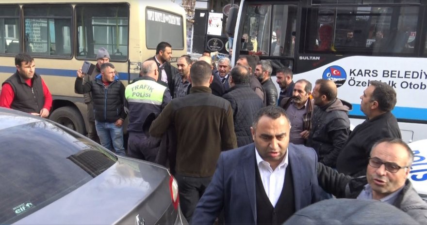 Kars’ta, hatlarına ek dolmuş eklenmesini protesto eden dolmuşçular, araçlarını belediye binası önüne çekerek yolu trafiğe kapattı. Polis, uyarıları dikkate almayan dolmuşçulara müdahale etti.