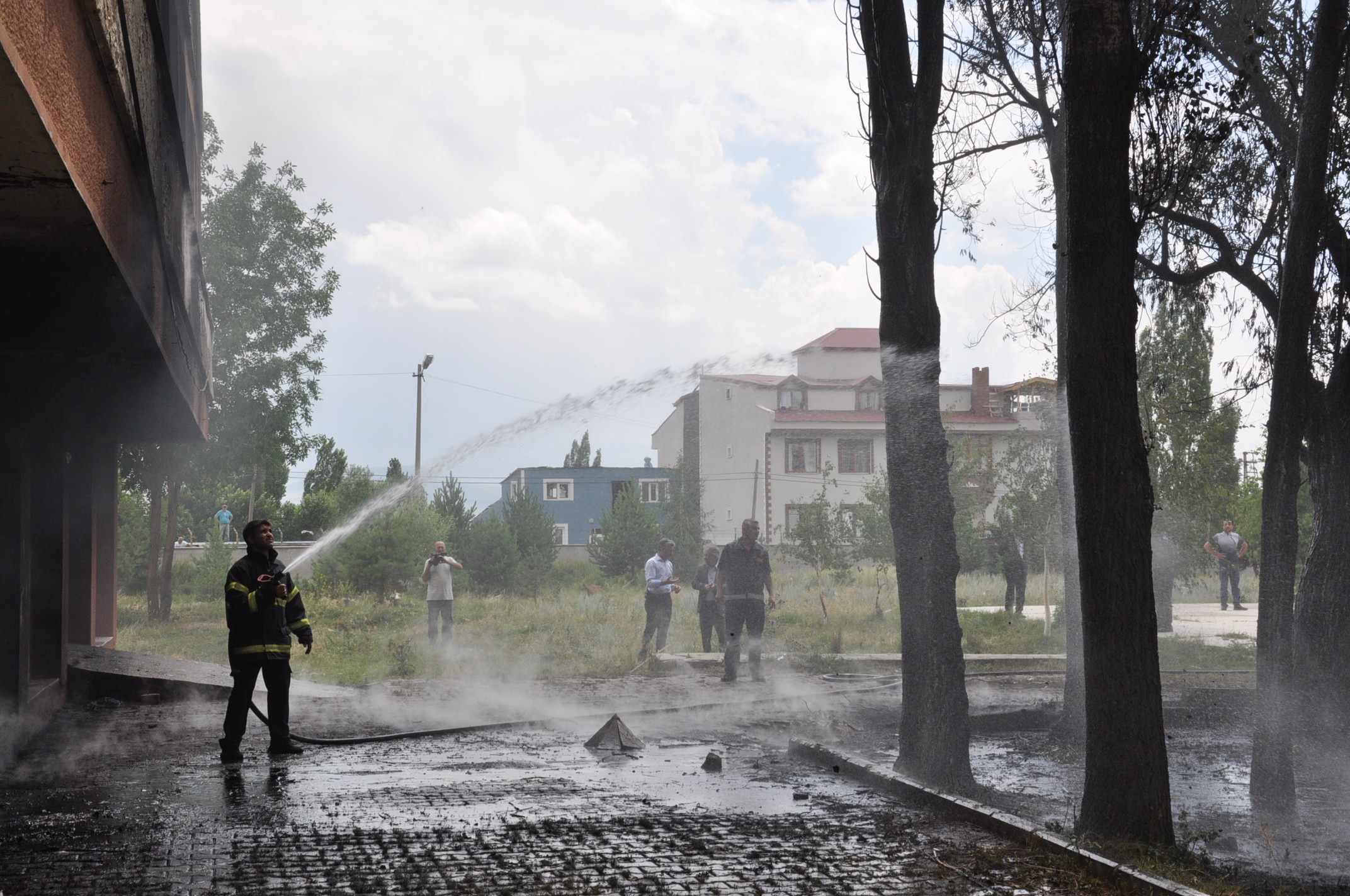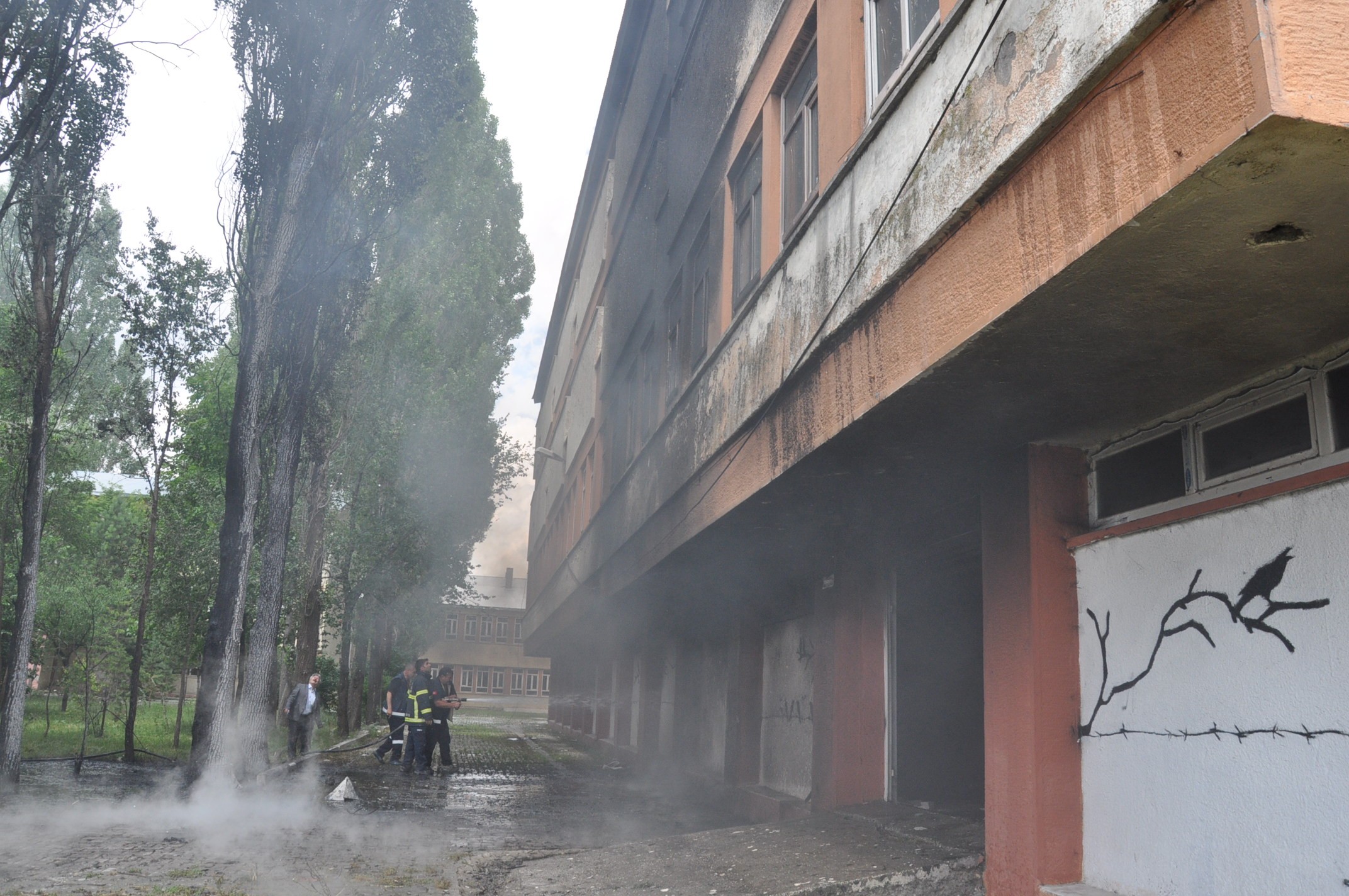 Kars’ta boşaltılmış fakülte binasında çıkan yangın korkuttu