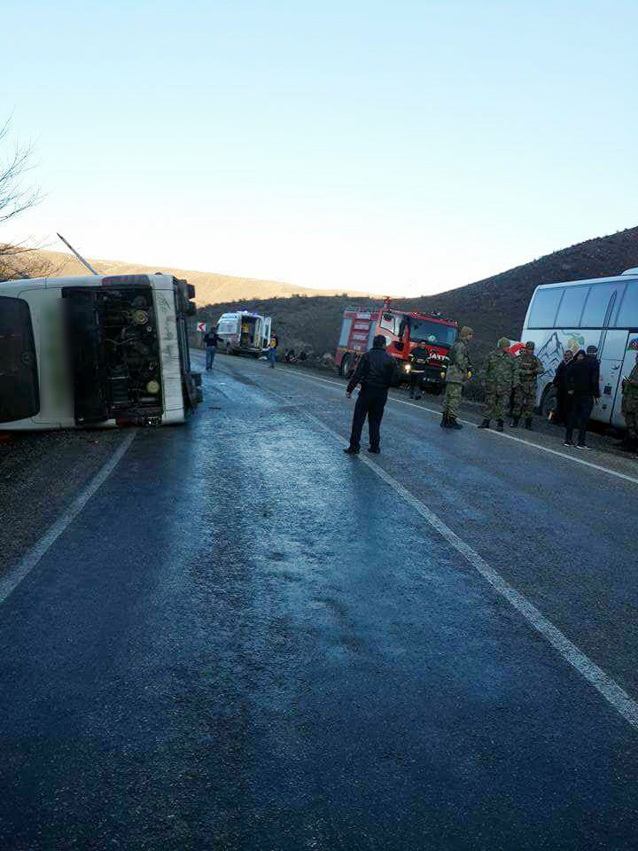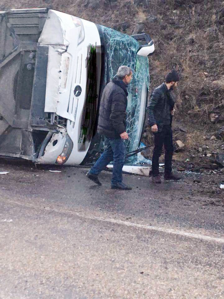 Kars’ın Sarıkamış ilçesinde buzlu yolda kayan yolcu otobüsünün yan yatması sonucu meydana gelen trafik kazasında 9 kişi yaralandı.