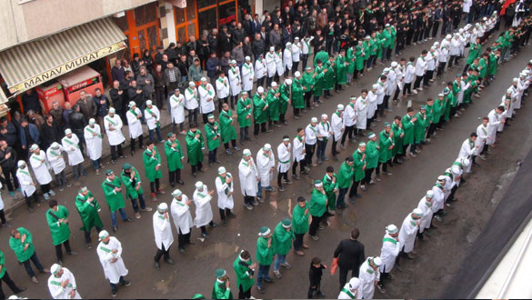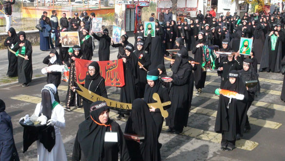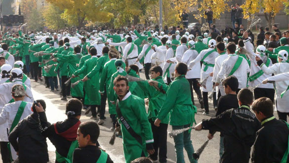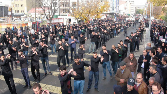 Ehlibeyt dostları, Ehlibeyt Işıklı Camii önünde düzenlenen törenin ardından Türk bayrağı, Atatürk, Hz. Hüseyin posterleri ve mersiyeler eşliğinde ve Merkez Ehlibeyt Işıklı Camii’nden Garnizon Şehitliğine oradan da Yeni Mahalle Mezarlığı’na yürüdü. Yeni Mahalle Mezarlığı önünde de deste guruplarının zincirlerle dövünmeleri, sine vurma ve mersiyeler eşliğinde Hz. Hüseyin’i yad etmesi sonrasında aile mezarları ziyaret edilerek, Kur’an-ı Kerim okudu.