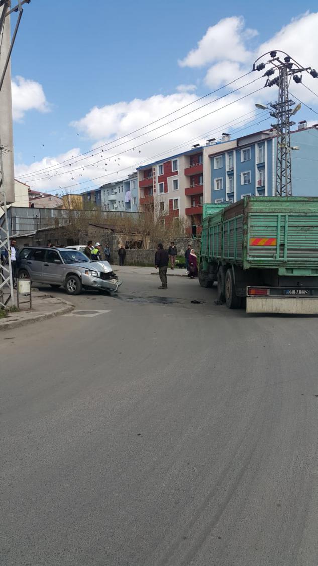 Kars'ta otomobil ile kamyonun çarpışması sonucu meydana gelen kazada 1 kişi yaralandı.